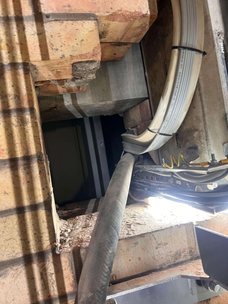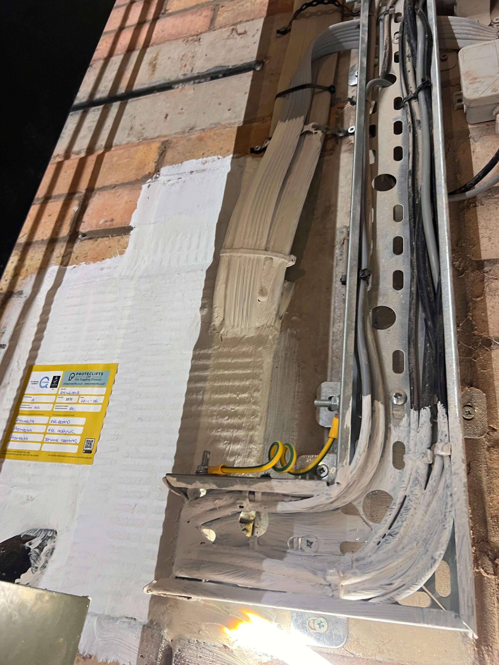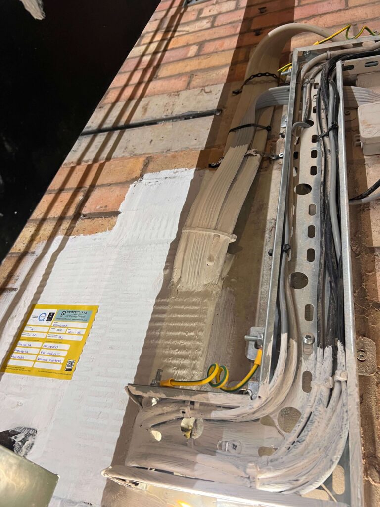 Our team installed a compliant fire-rated sealing system around all cable penetrations, reinstating the fire integrity between the machine room and lift shaft.